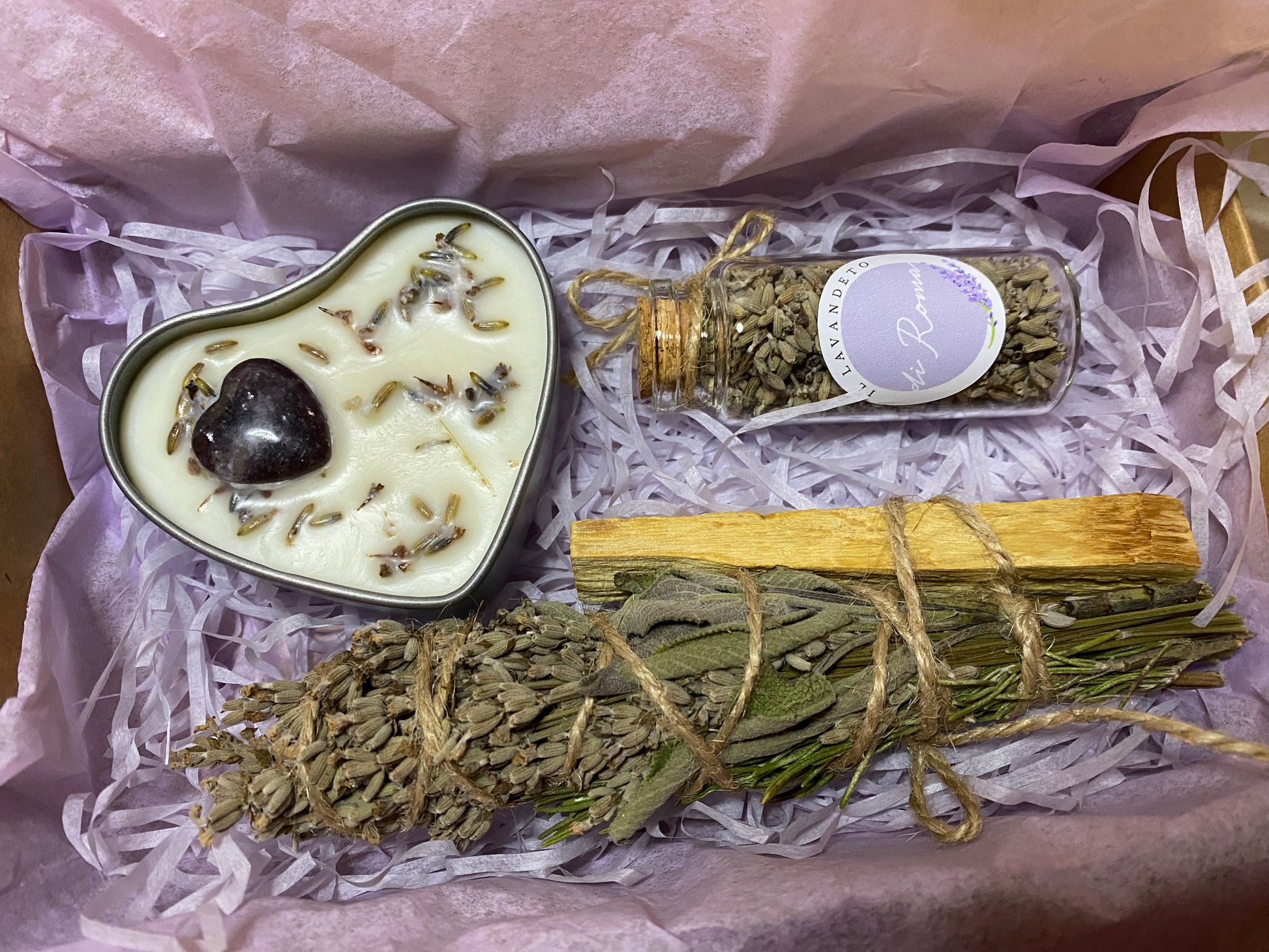 -candela rilassante con olio essenziale di Lavanda e cuoricino di Ametista