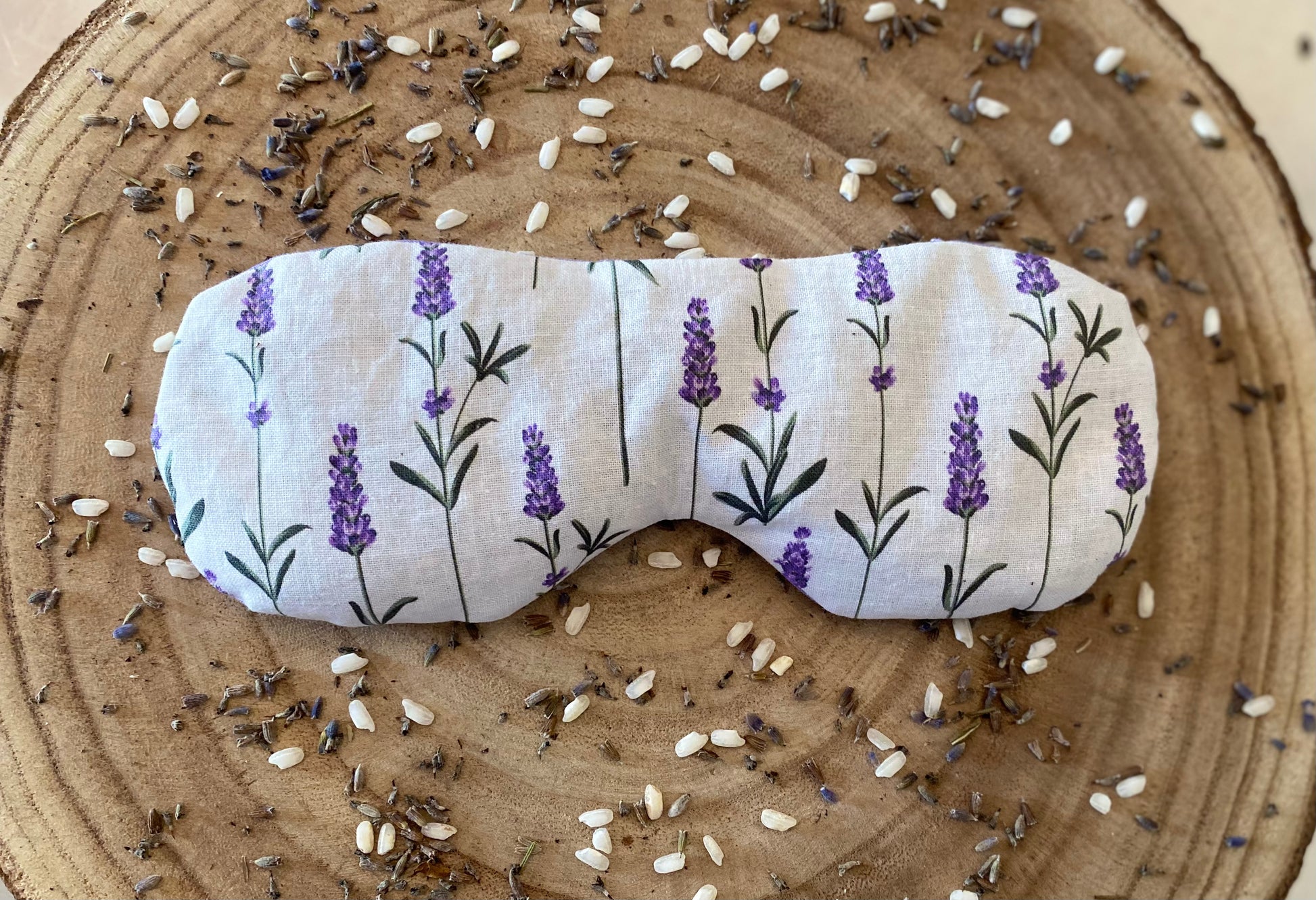 Mascherina rilassante in cotone, ripiena di fiori di Lavanda Officinale e riso.
